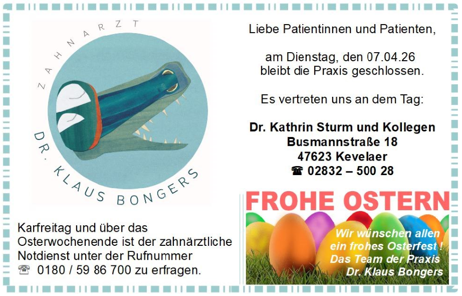 Willkommen in der Zahnarztpraxis von Dr. Klaus Bongers in Kevelaer-Winnekendonk